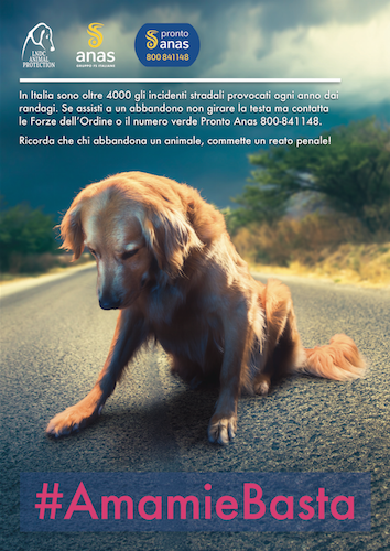 I cantonieri di Anas, Azienda che gestisce 30 mila km di rete stradale e autostradale di interesse nazionale, salvano ogni giorno moltissimi cani che ancora vengono abbandonati lungo le strade italiane, garantendo la sicurezza loro e degli automobilisti. Per questo motivo, torna la campagna #AMAMIeBASTA di Anas e LNDC, Lega Nazionale per la Difesa del Cane, per la lotta contro l’abbandono degli animali domestici attraverso la sensibilizzazione sui canali social, sugli organi di informazione e su RAI Isoradio 103,3 FM in vista dell’inizio dell’esodo estivo.