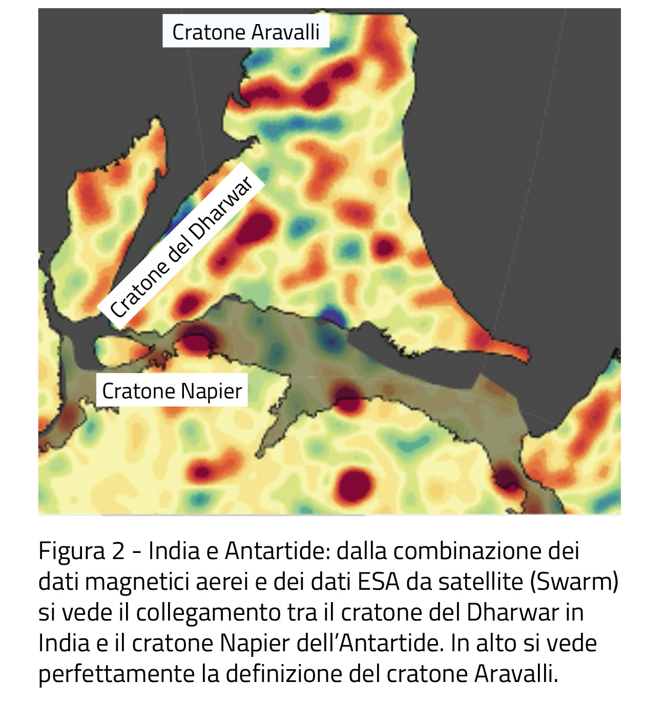 Il gruppo di ricerca, di cui fanno parte l’Istituto Nazionale di Oceanografia e di Geofisica Sperimentale – OGS, il British Antarctic Survey e la Witwatersrand University in Sud Africa, coordinati dall’Università tedesca di Kiel, ha utilizzato i dati magnetici dei satelliti della missione Swarm dell’ESA combinandoli con quelli rilevati dagli aerei, per studiare la geologia subglaciale dell’Antartide e collegarla con quella di Australia, India e Sud Africa, che formavano l’antico supercontinente chiamato Gondwana. Utilizzando i nuovi dati magnetici è stato possibile ricostruire come le placche tettoniche si siano separate tra loro nel corso di milioni di anni dopo la rottura del Gondwana e correlare i principali cratoni e orogeni, strutture geologiche che compongono la crosta terrestre, nei diversi continenti prima della loro separazione.