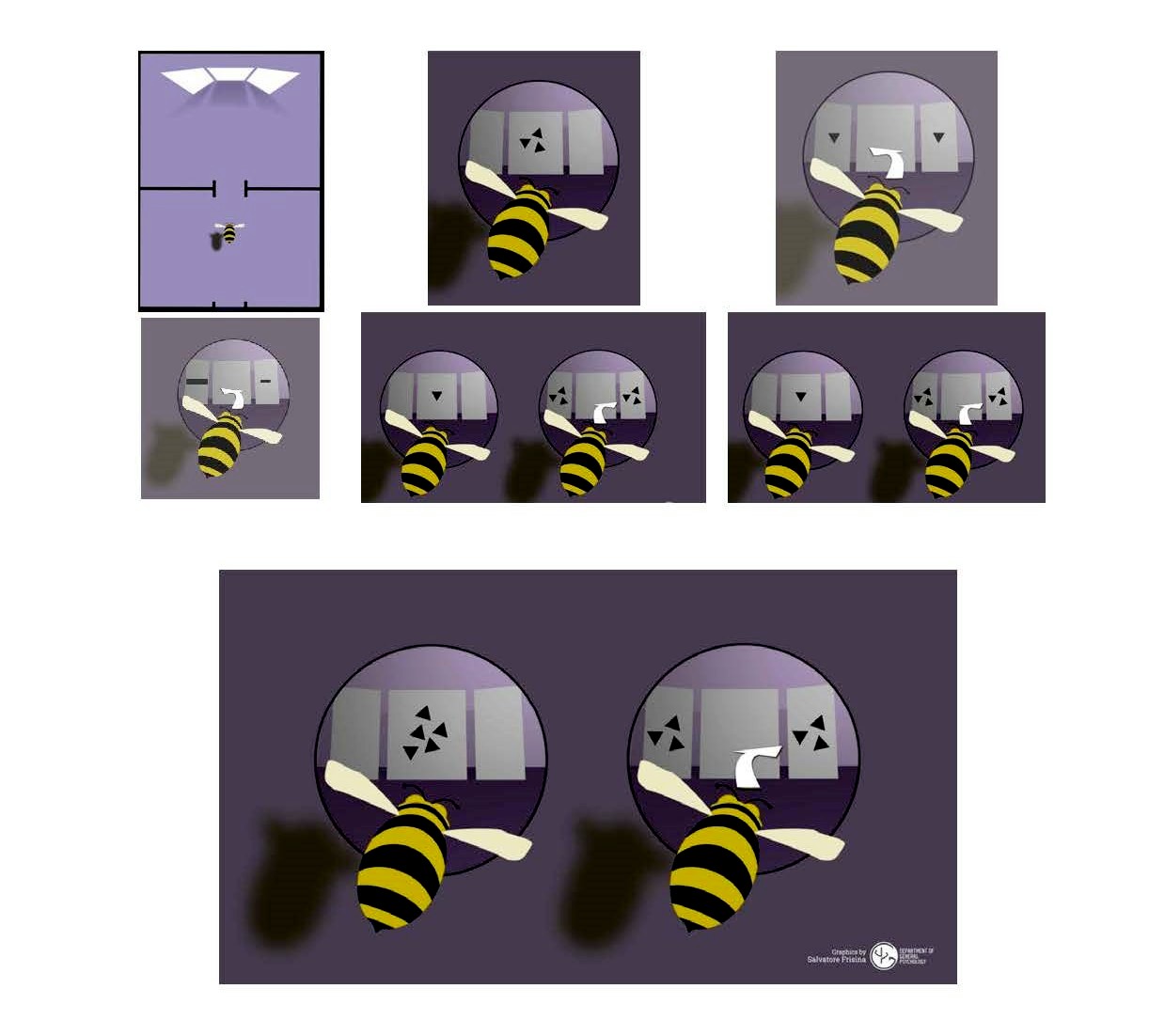 In un esperimento cruciale, si sono selezionati due gruppi di api: uno è stato addestrato a trovare il cibo in prossimità di un’immagine centrale raffigurante una singola figura, l’altro gruppo è stato addestrato con cinque figure.
