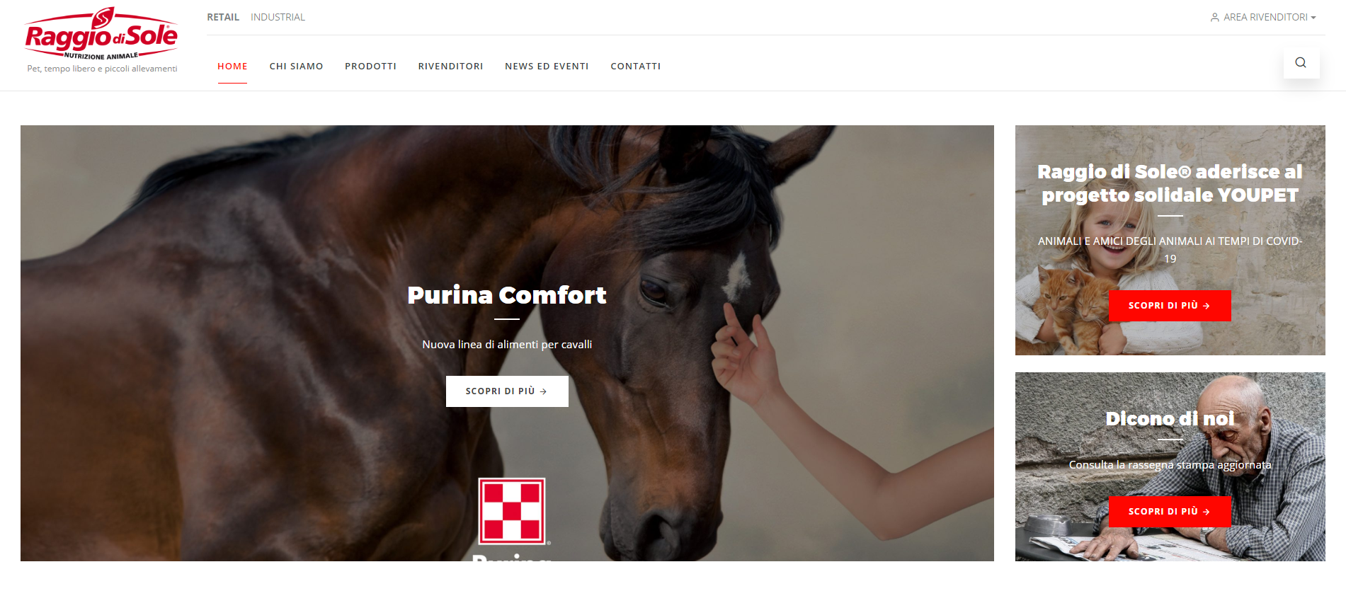 Il nuovo portale, dal design più moderno e accattivante, risponde all’esigenza di essere maggiormente dinamico, user-friendly e mobile responsive. Si rivolge ai due diversi target di riferimento dell’azienda: da un lato il mondo legato ai pet, al tempo libero e ai piccoli allevamenti e dall’altro il settore degli allevamenti industriali.