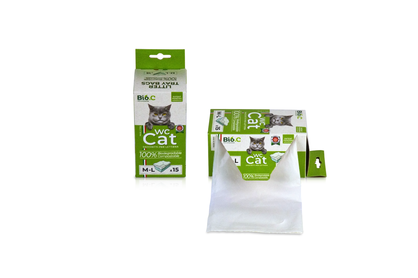 WC Cat è la linea di sacchetti per lettiera al 100% compostabili. Particolarmente indicati per chi sceglie una lettiera vegetale per il felino di casa, sono prodotti con materie prime rinnovabili e brevettati da Bio.C. Sono estremamente robusti e resistenti ai graffi, con saldature laterali per la massima tenuta del fondo. Da oggi con WC Cat è possibile smaltire la lettiera come rifiuto organico grazie al materiale compostabile.