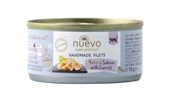 La gamma di alimenti umidi per gatti nuevo si arricchisce con le referenze Handmade Filets Natural e Handmade Filets Jelly in lattina monoporzione da 70 g. Una gamma 100% Made in Germany e realizzata a mano.