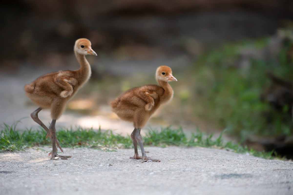 Sono nati al di là del ruscello, in un nido seminascosto e vicino ad una preziosa fonte d’acqua. Non è raro che una coppia di gru della Manciuria deponga due uova, rarissimo che sopravvivano entrambi i pulcini: eppure al Parco Natura Viva si sono schiusi tutti e due i gusci, l’uno tre giorni dopo l’altro, lontani dalla vista del pubblico e dello staff. L’unica cosa di cui il veterinario del Parco è certo, è che i genitori abbiano atteso di vedere anche l’ultimo nato reggersi per bene sulle zampe prima di accompagnarli oltre il corso d’acqua. Oggi i due fratellini della seconda gru più minacciata al Mondo hanno appena un mese e si tengono al riparo delle lunghe zampe dei genitori, al confronto delle quali sembra impossibile immaginare che prima o poi raggiungeranno anch’essi il metro e sessanta di altezza.