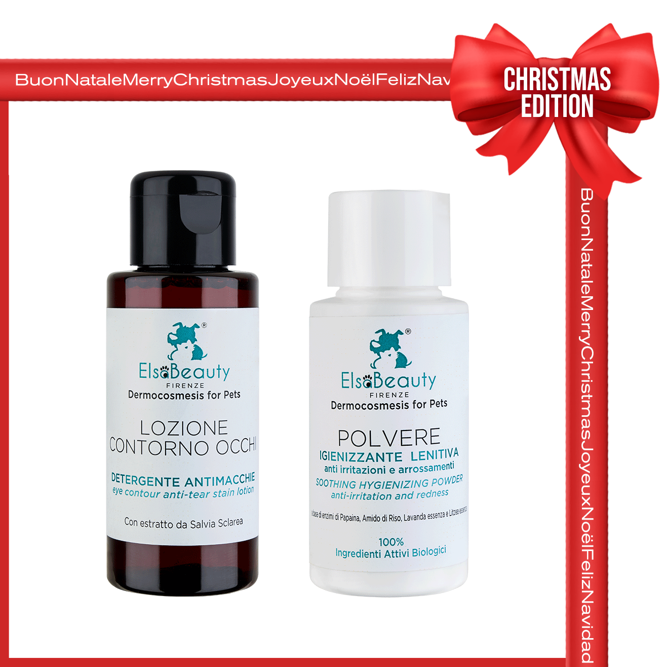 Quattro combinazioni per regalare o regalarsi le inimitabili referenze ElsaBeauty Dermocosmesis for Pets nei mini formati da 50 ml e 20 gr.