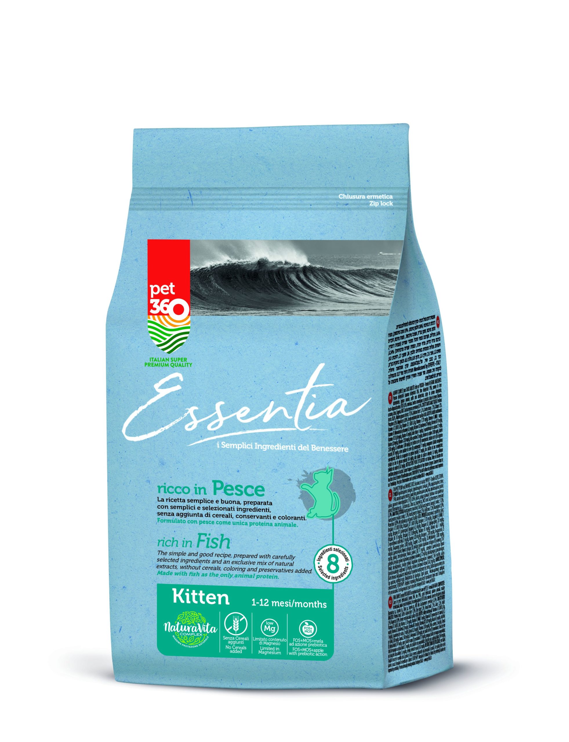 Tra le proposte super premium della nuova linea Pet360 Essentia, sono due le ricette KITTEN, specifiche per i gattini nella fase di crescita: una con pesce e una con maiale. Le due gustose ricette dedicate ai piccoli mici sono altrettanto sane, per farli crescere forti, fornendo loro tutti i nutrienti necessari al corretto sviluppo, supportando e attivando il sistema immunitario.