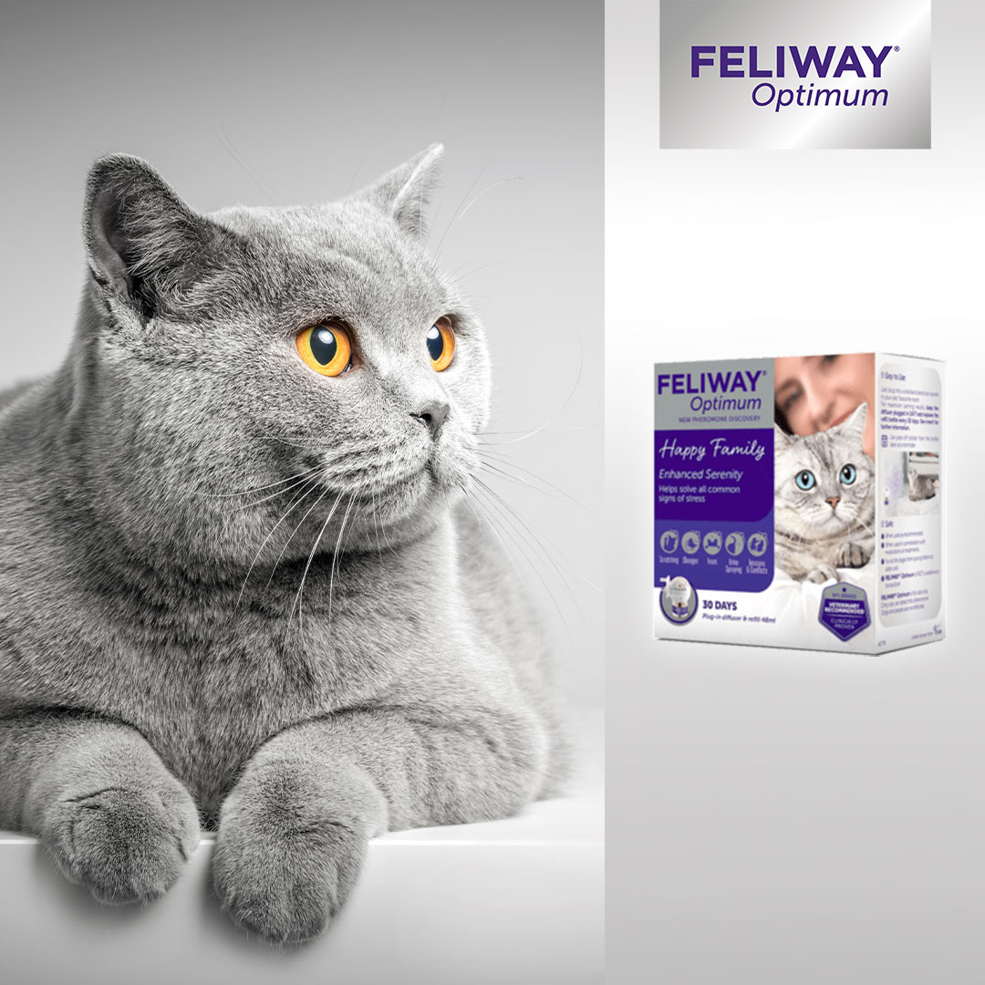 Chi osserva segnali di stress nel gatto, e chi in generale desidera prevenirli, oggi ha un nuovo alleato: un complesso di feromoni felini che riunisce in un prodotto unico un mix selezionato dei feromoni felini più adatti, nella concentrazione idonea per inviare al gatto messaggi di fiducia e sicurezza sia ambientale che sociale in modo ancora più completo, preciso ed efficace. Si tratta del nuovo Feliway Optimum, derivato da anni di ricerca di Ceva Salute Animale: una soluzione non farmacologica, clinicamente testata utile per affrontare tutte le più comuni situazioni di stress, anche nei gatti che manifestano una molteplicità di segnali di disagio contemporaneamente. Feliway Optimum si presenta sotto forma di diffusore per ambiente, è inodore e non è percepito da altri animali né dalle persone, e gli studi clinici mostrano che il 93% dei proprietari ha notato maggiore serenità nel gatto in 1 mese, con efficacia dimostrata su tutti i segnali di stress più comuni.