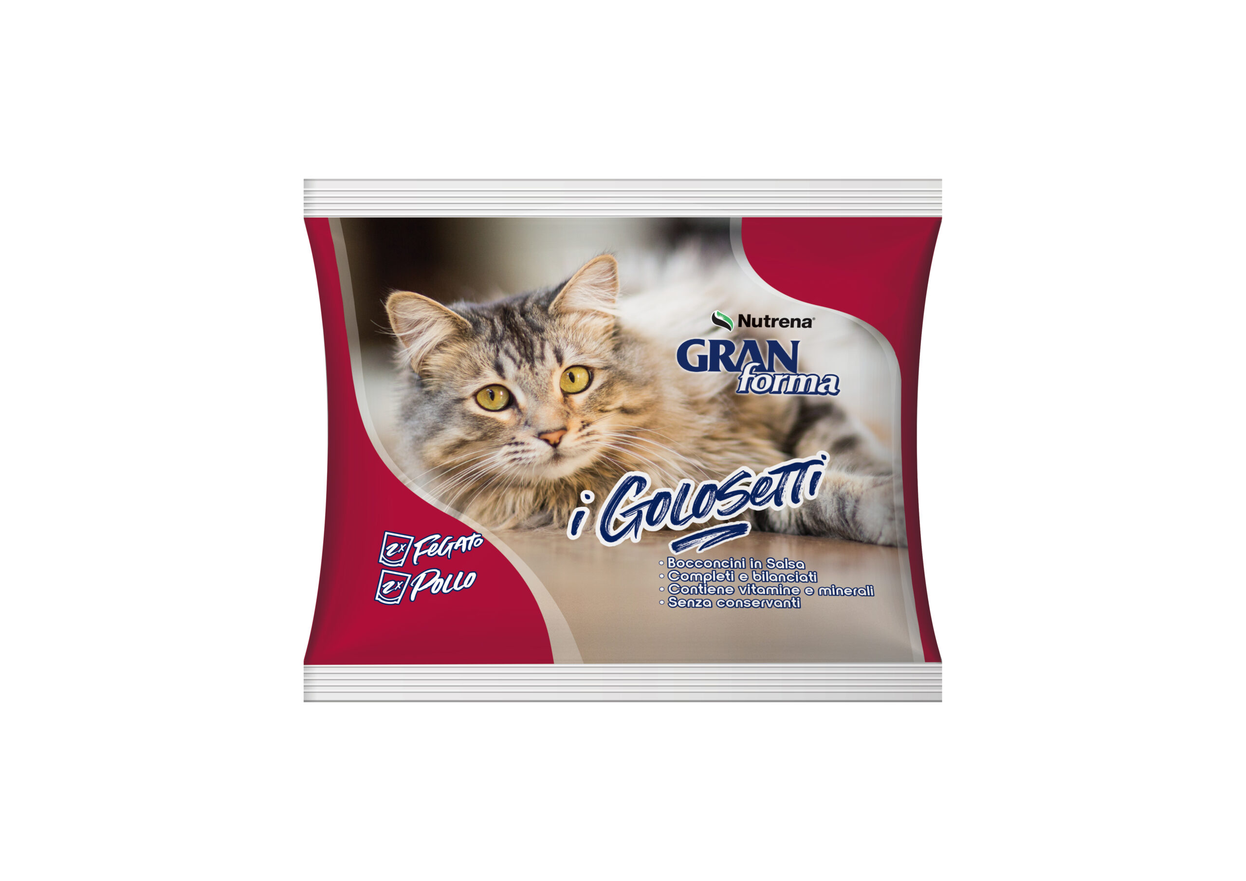 Nati dalla ricerca Nutrena, i Golosetti GRANforma sono squisiti bocconcini in salsa, disponibili in due diverse e appetitose varianti di gusto, per soddisfare anche i palati più difficili: Pollo e Fegato e Trota e Salmone.