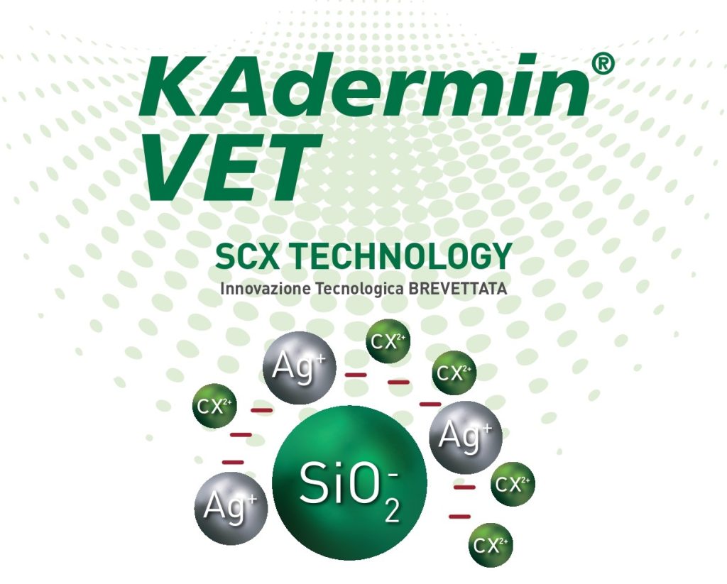Caratterizzato dalla presenza del complesso SCX, costituito da biossido di silicio, argento ionico e clorexidina, inglobato nella barriera formata dall’acido ialuronico, Kadermin VET per uso veterinario ha dimostrato, oltre all’elevato potere battericida, anche una notevole capacità di favorire la cicatrizzazione e la riparazione della cute lesionata e ulcerata, grazie proprio alla proprietà filmogena e idratante dell’acido ialuronico. Grazie alle proprietà adesive e idratanti dell’acido ialuronico, infatti, il complesso SCX è in grado di creare una barriera protettiva coadiuvante i naturali processi di rigenerazione tissutale, favorendo il ripristino delle normali condizioni fisiologiche utili alla rigenerazione spontanea della cute. Oltre ovviamente a favorire un’efficace prevenzione antibatterica nelle lesioni ad elevato rischio di infezione.