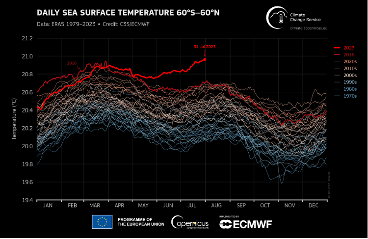 La temperatura media globale per il luglio 2023 si conferma la più alta mai registrata finora per qualsiasi mese.