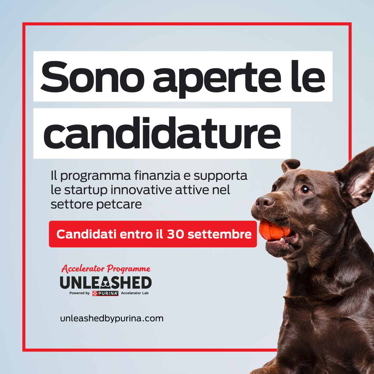 Purina invita le startup di tutto il mondo a diventare protagonisti della prossima generazione di innovatori del settore petcare, aprendo le candidature alla sesta edizione di Unleashed che, grazie al supporto del Purina Accelerator Lab, identifica e sostiene startup dirompenti che utilizzano tecnologie innovative per migliorare la vita dei pet e delle persone che li amano. Nel 2025, Unleashed si impegnerà ad accelerare fino a 10 nuove startup: le realtà che vogliono mettersi in gioco potranno presentare la loro domanda di partecipazione entro il 30 settembre 2024 e i vincitori verranno annunciati a febbraio 2025.