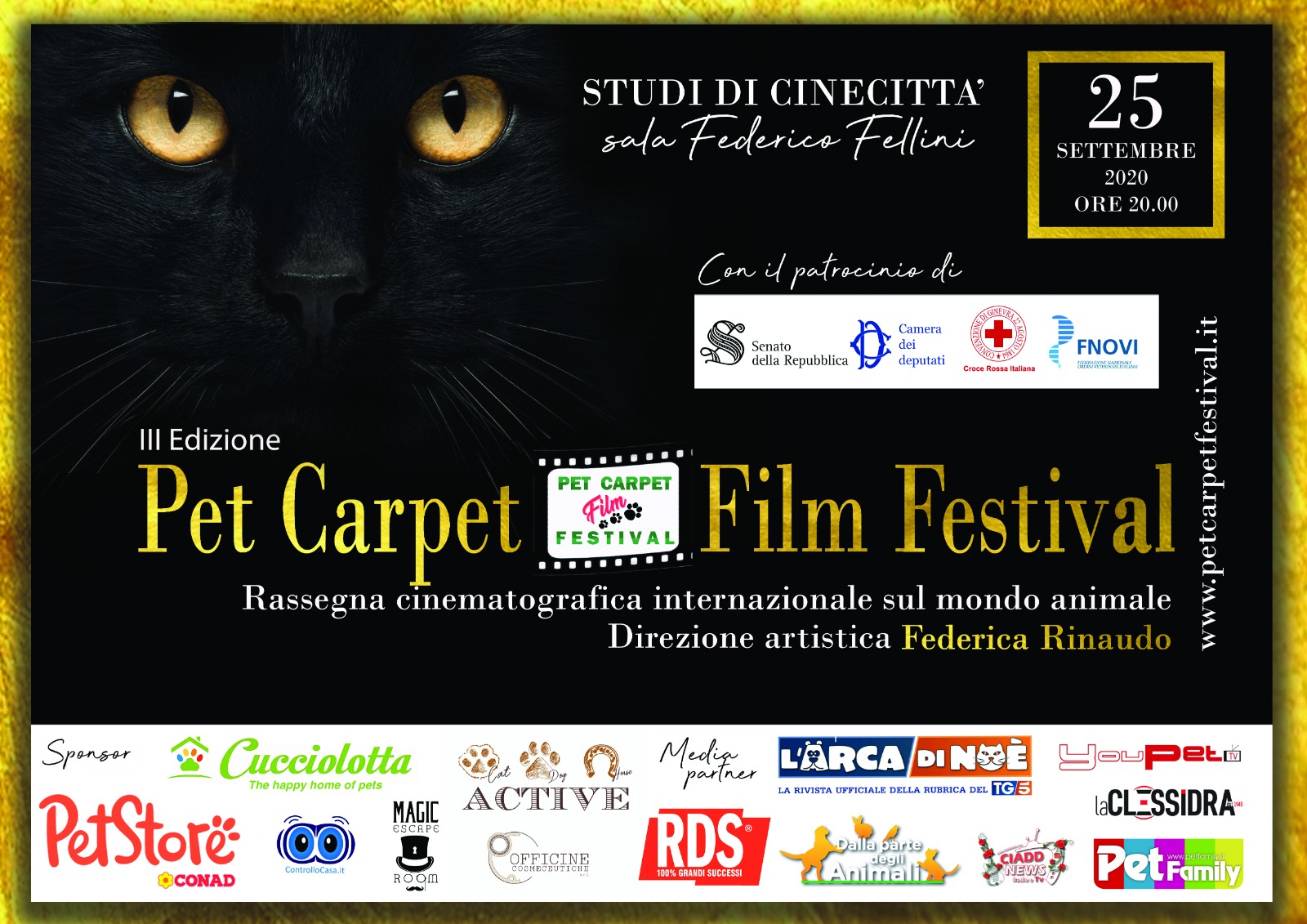 Animali e uomini, una storia antica quanto l’evoluzione, un legame che in molti casi intreccia sentimenti di amore e di amicizia. Sono proprio queste le testimonianze al centro della terza edizione del Pet Carpet Film Festival, la rassegna cinematografica internazionale dedicata al mondo animale. Ideata dalla giornalista Federica Rinaudo, che cura anche la direzione artistica, la kermesse, con il patrocinio di Senato della Repubblica, Camera dei Deputati, Croce Rossa Italiana, Fnovi (Federazione Nazionale Ordine Veterinari Italiani), si pone lo scopo di informare, educare e sensibilizzare l’opinione pubblica sull’importanza di creare una società più rispettosa nei confronti degli animali. Un progetto che viaggia attraverso le immagini, grazie alle centinaia di cortometraggi pervenuti dall’Italia e dall’estero, che arrivano dritte al cuore. Emozionanti, divertenti e, purtroppo, anche drammatici i corti hanno per protagonisti cani, gatti, conigli, cavalli, tartarughe, pappagalli, lucertole e tanti altri. Tre le categorie previste anche quella sul Covid -19 , “Noi non siamo contagiosi”, dedicata alle criticità causate dal distanziamento sociale che non ha riguardato però gli amici a quattrozampe, una risorsa ancora più preziosa durante la Pandemia. A condurre l’edizione 2020, che si svolgerà il prossimo 25 settembre presso gli Studi di Cinecittà a Roma nella Sala Federico Fellini, gli attori Enzo Salvi e Maurizio Mattioli, reduci dalla campagna contro l’abbandono di Roma Capitale che li ha visti testimonial durante l’estate in compagnia di Peggy e Tyson. Regia a cura di Claudio Insegno e del suo inseparabile barboncino Burt. Numerosi i temi trattati nei cortometraggi, molti dei quali girati con un semplice smartphone, dai rapporti indissolubili, al triste fenomeno dell’abbandono, al vuoto incolmabile lasciato dagli animali volati sul ponte dell’arcobaleno, all’impegno dei volontari delle numerose associazioni.