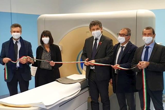 Il rettore Francesco Ubertini e il direttore del Dipartimento di Scienze mediche veterinarie Giuliano Bettini hanno inaugurato con un taglio del nastro la nuova tomografia computerizzata: uno strumento di ultima generazione, altamente performante, che è stato ottenuto grazie al Bando Alma Attrezzature promosso dall’Alma Mater e a un contributo del Ministero dell’Università nell’ambito del progetto Dipartimenti di Eccellenza.